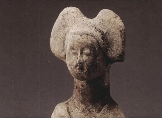 南朝时期则盛行高髻,出现了有名的“飞天髻”,即将头发作成大大的双环或三环直立于头上,两鬓余发很多,下垂几近肩部,南朝陶俑中就有这样的发式。顾恺之笔下的“洛神”亦为“飞天髻”的发式。