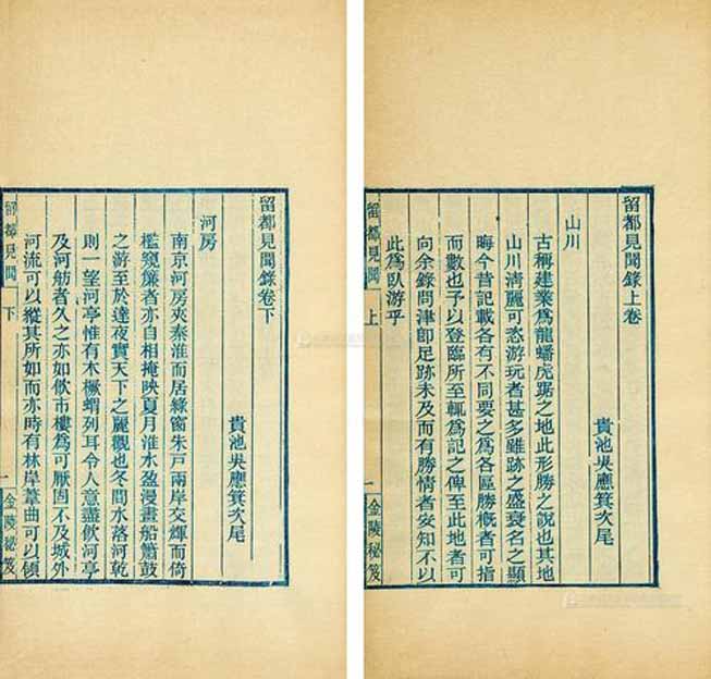 书仿孟元老《东京梦华录》体,原目有十三:山川、人物、园亭、官政、科举、书画、器用、交游、服色、时事、寺观、宴饮、音乐。清康熙十九年(1680)初刻时,只有山川、园亭、科举三门,雍正八年(1730)续得河房、公署、官政、寺观、服色、时事六门,以前三门为上卷,后六门为下卷,至此,多出河房,公署二门,仍缺原目六门。