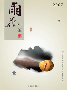 在封面设计上也突现创新特色,把“雨花石”这枚世界闻名的瑰宝,巧妙地点缀在封面中,又把林散之著名书法家的墨宝溶入“雨花年鉴”题目之中,使得2007年卷《雨花年鉴》的封面越发大气磅礴、具有展力、突现灵气和书卷气。